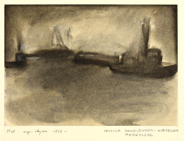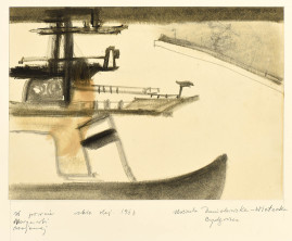 W porcie marynarki wojennej - 1968 - szkic olejem - wymiar 22,0x32,5cm