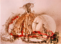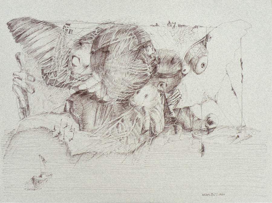 in der Schaffensperiode 1977-1986 entstanden surrealistische Tusche- und Bleistift-Zeichnungen und Ölgemälde Inspierierend von Michaelangelo, Salvadore Dali und Hieronimus Bosch